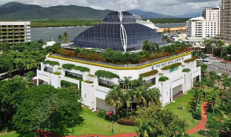 Uno de los aspectos que más llama la atención de esta sala de juegos es su cúpula de techo de cristal. Desde ella se puede avistar todo el horizonte del mar de Coral y solo por ello ya merece la pena entrar a dicha construcción. Su hotel se considera el más exclusivo de la ciudad de Cairns con cinco estrellas de valoración y lo mejor es que alrededor hay una zona de tiendas de lujo en las que las grandes celebrities, y todo el público que así lo desee, pueda realizar sus compras.