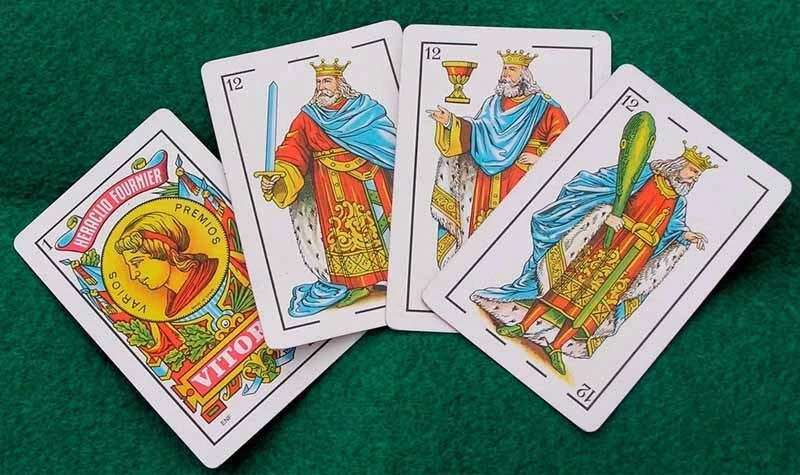 - Baraja española de 40 cartas (oros, copas, espadas y bastos).